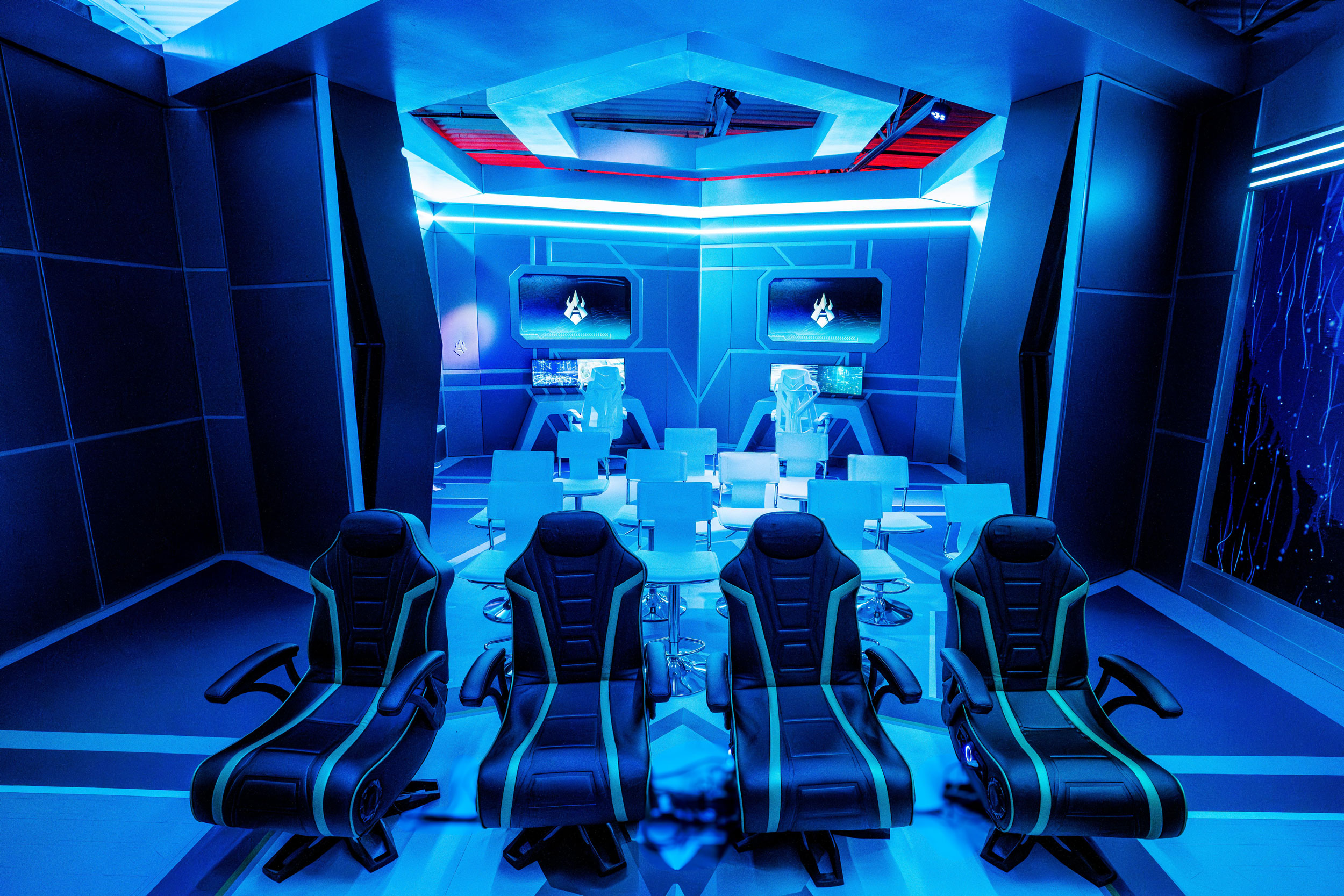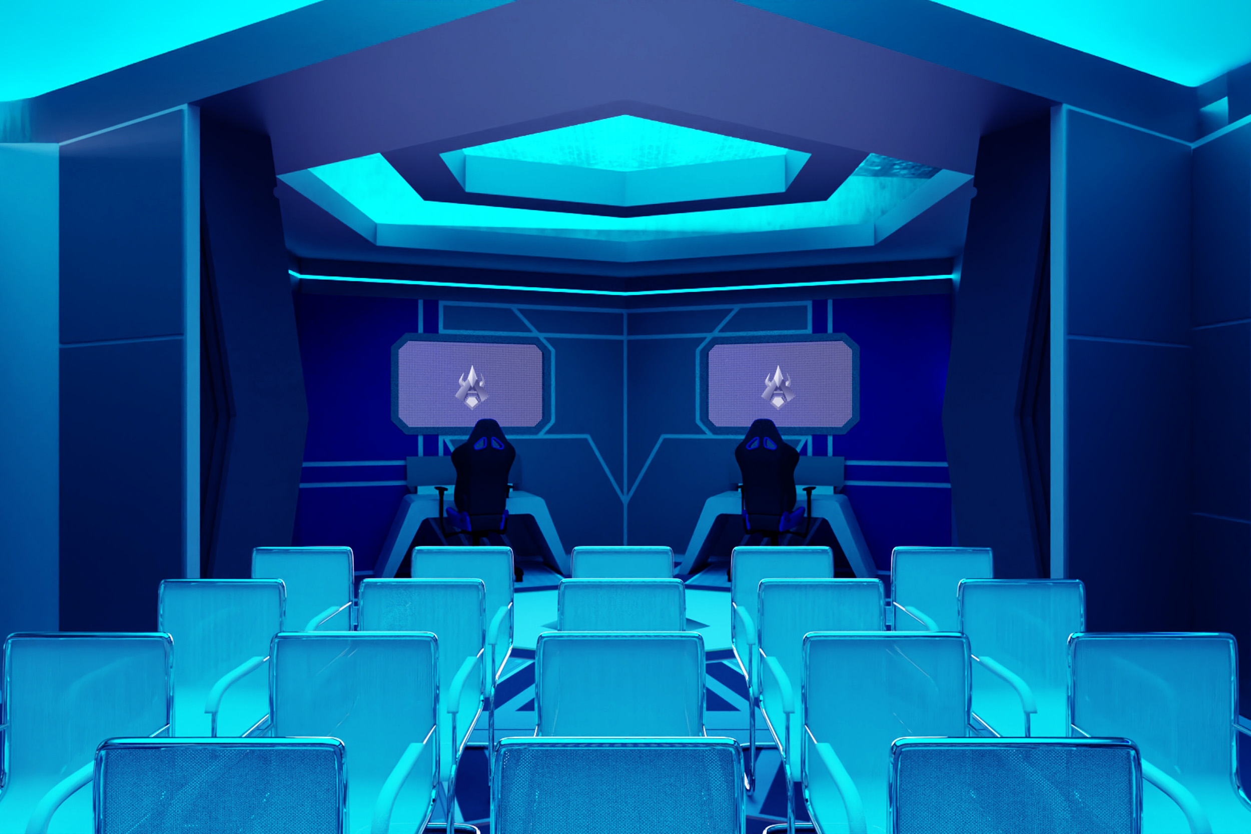client’s goals while creating a memorable experience for attendees. I began by developing mood boards to establish the aesthetic direction, blending futuristic and